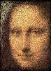 - Just a bit of fun with Mona Lisa -- reconstructing an image (left) using 20000 randomly placed lines (centre) and 2000 circles (right). Each line/circle is just one colour. See here for an explanation. [click on images for higher resolution]: